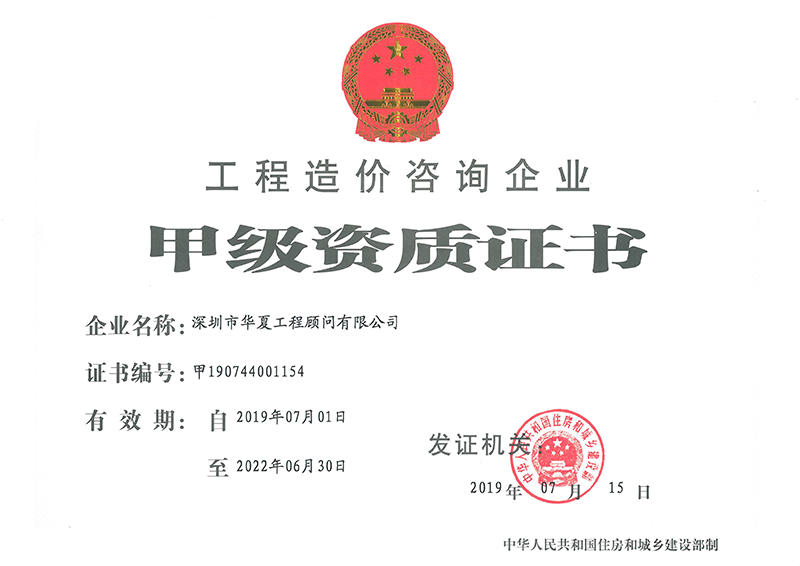 工程造價(jià)咨詢企業(yè)甲級(jí)資質(zhì)證書(shū)