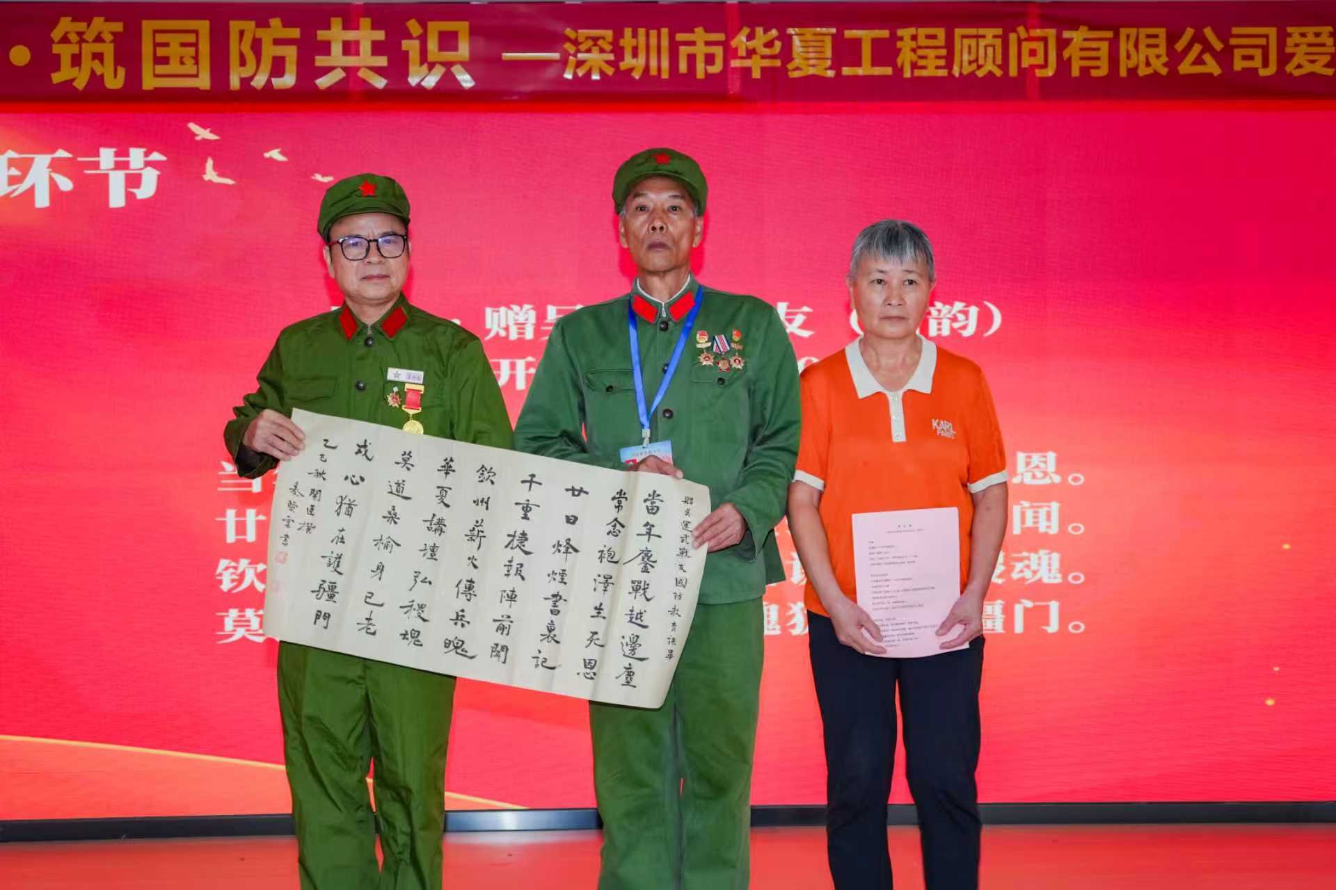 “參戰(zhàn)英雄,國防楷模”——鮮紅的錦旗上,八個大字熠熠生輝。董事長親手將錦旗贈予吳運武同志,這不僅是對一位參戰(zhàn)老兵的最高褒獎,更是華夏工程顧問有限公司對國防精神的堅定追隨。
